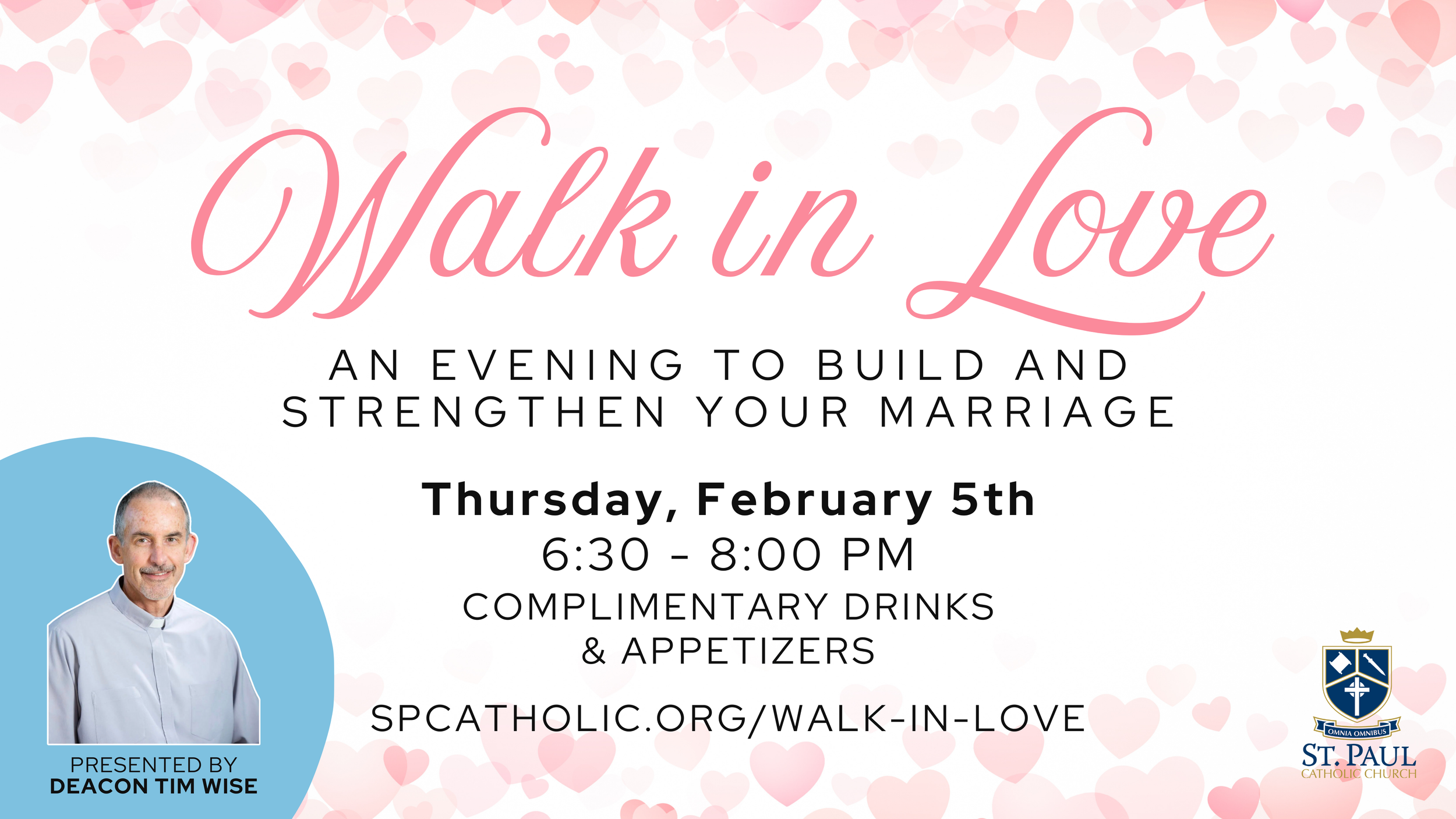 The St. Paul Marriage Ministry invites all married couples to Walk in Love, a mini-workshop designed to help you strengthen your connection with your spouse and build stronger communication habits.